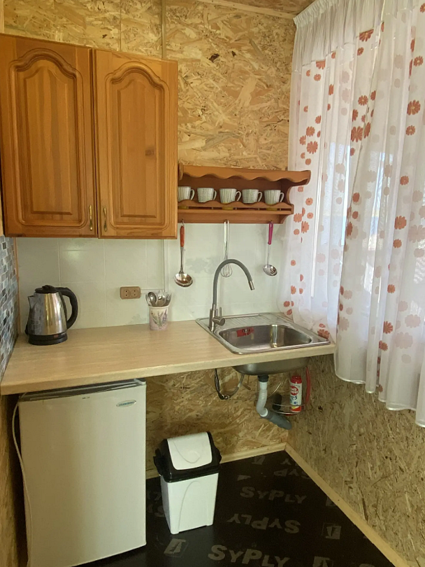 Домик с подселением. Отдельный вход, отдельная кухня и отдельный санузел. На кухне есть холодильник, электроплитка и электрочайник. В санузле унитаз и раковина с обеспечением водоснабжения.